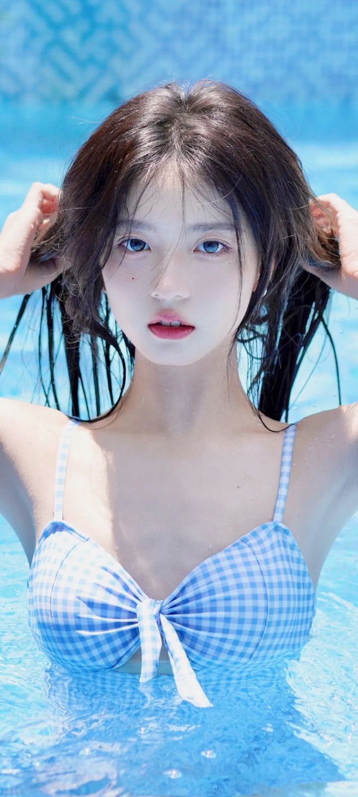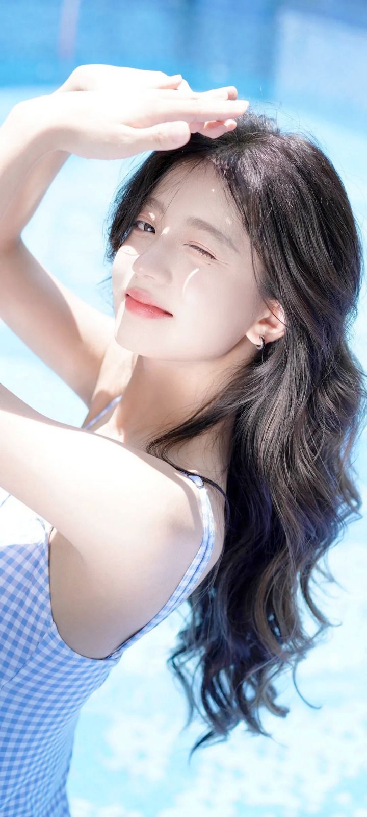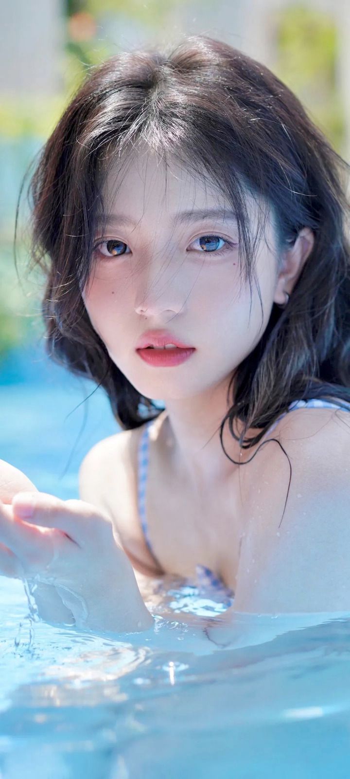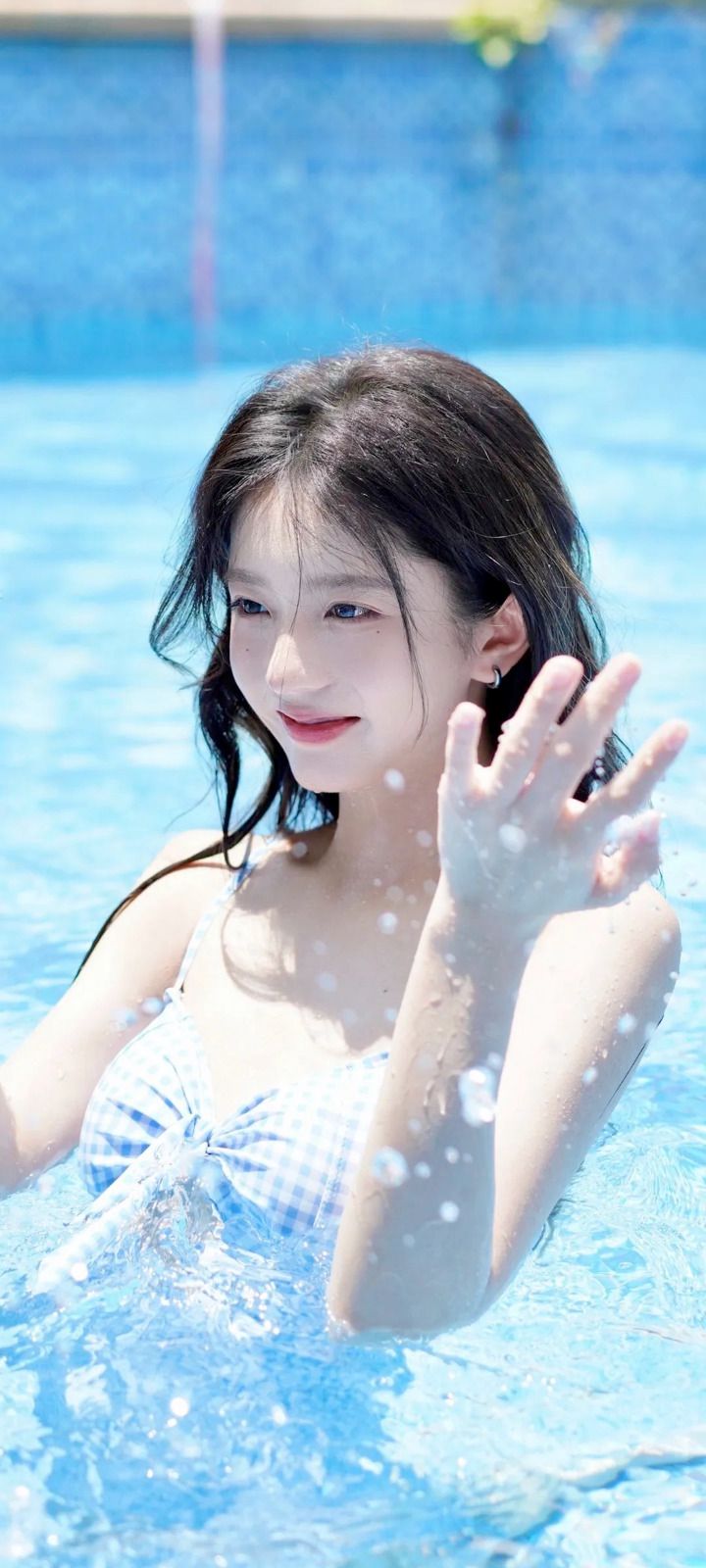 张柏芝泳池中秀身材,肤白肉嫩似美人鱼,拍摄者意外出镜引猜测!