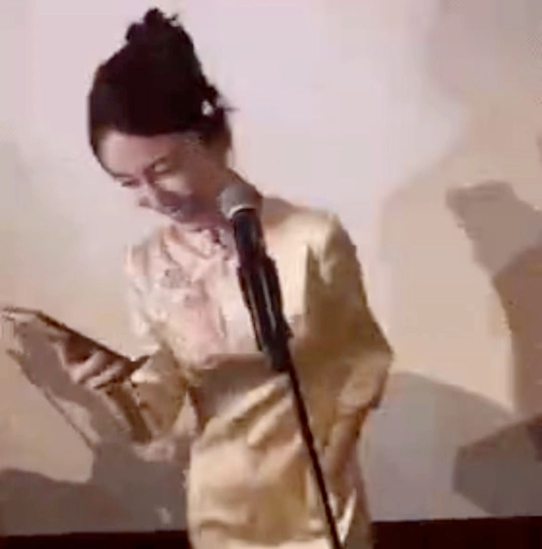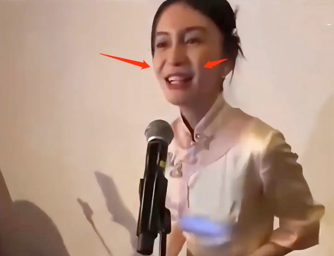 当天,杨颖身穿黄色旗袍,头发在后面盘起,露出精致的五官。只见她化着浓妆,鼻梁高挺,脸上几乎没有丝毫的瑕疵,笑起来脸上的皱纹明显,不似以往的精致,反倒带有一些老态。