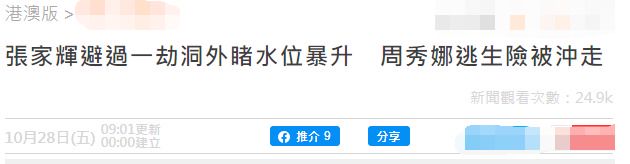 这不,10月28日就有港媒报道称37岁女星周秀娜拍戏的时候遇到了意外,山洪爆发后她和剧组里三十几人一起躲在山洞里避险,而另2位演员陈伟霆和张家辉幸运地逃过了一劫,该消息一出引发了众网友的关心和担忧,整个紧急救援的过程也是非常艰辛。