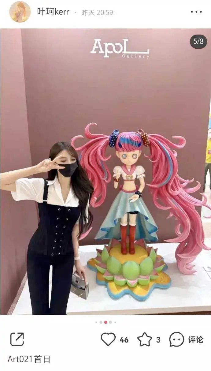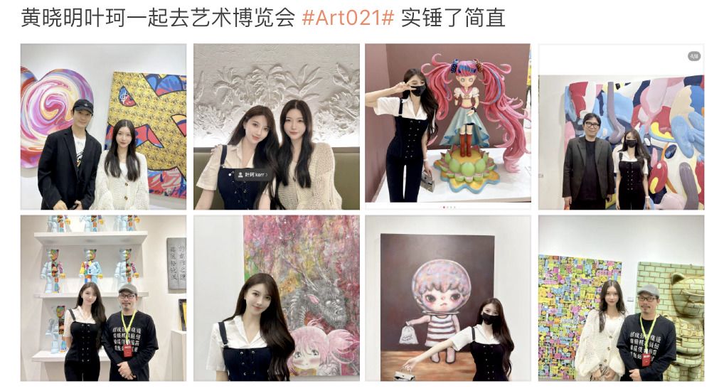 或许是因为外界言论的影响,该博主将自己与叶珂的合照删除,但是从叶珂本人发布的动态中,也能得知她的确与黄晓明在同一天前去了展览中心看展。