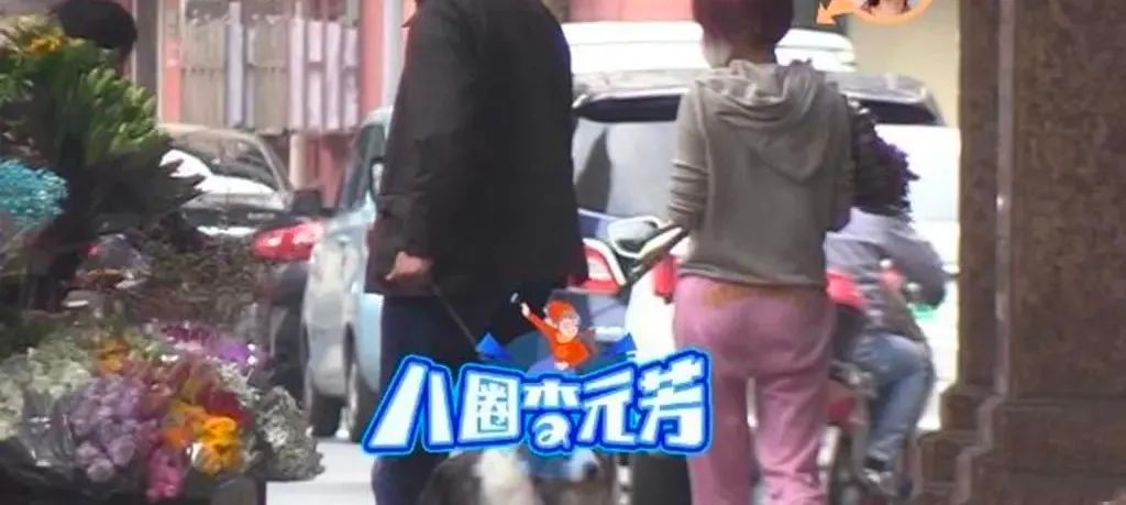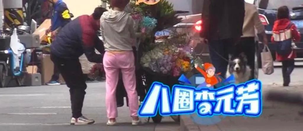 此时,周围有来来往往的人经过,但想必是马伊璃的着装过于随意,他们并没有将她认出来。等到马伊璃付完钱拿着花后,两人又继续往马路前方走去。
