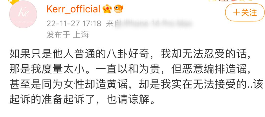 不过,11月27日,叶珂突然发文怒斥那些造谣者,称她正在准备资料起诉这些人。同时,叶珂还否认了黄晓明身边的人是自己,疑似间接性否认这段恋情。