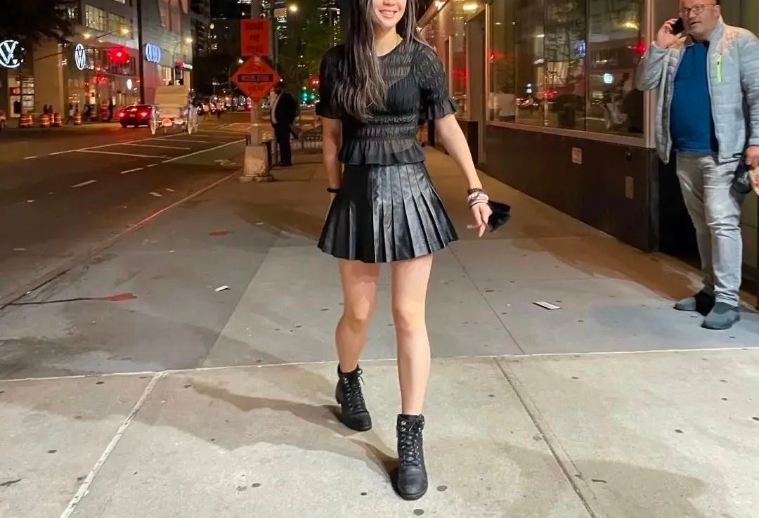曝光的照片中,19岁的Jada站在街头打扮得非常大胆,上身穿着黑色透视装,下身搭配超短百褶裙,露出一双又细又白的美腿,火辣的好身材也一览无余。其出众的外貌吸引了身旁外国大叔的目光,对方打着电话还目不转睛地望着Jada。引人注目的是,周围人都穿着厚实的羽绒服,与Jada清凉的穿着打扮仿佛在过两个季节。
