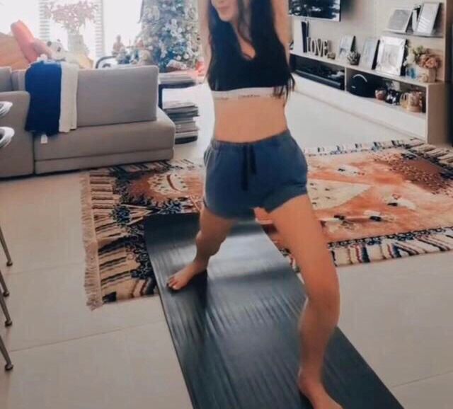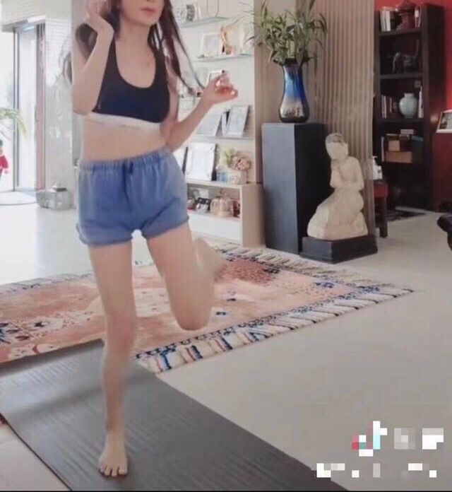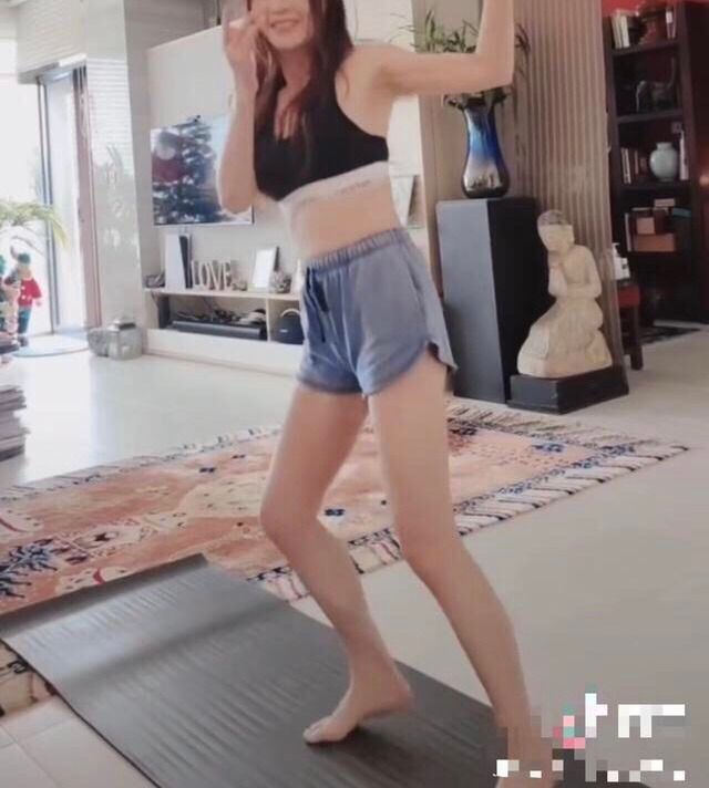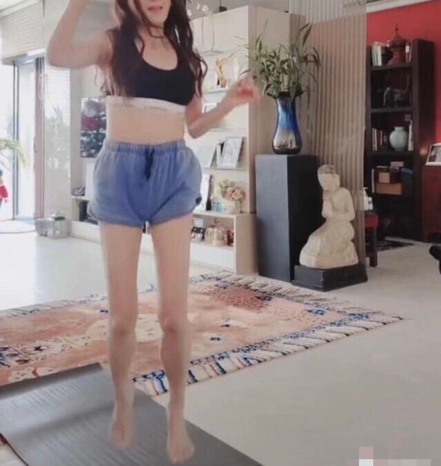 过了一会儿,温碧霞又甩着手,在瑜伽垫上原地蹦跳,长长的头发随着她的动作不停地晃动,她的脸上还露出了灿烂的笑容,俏皮的模样好似少女一般。