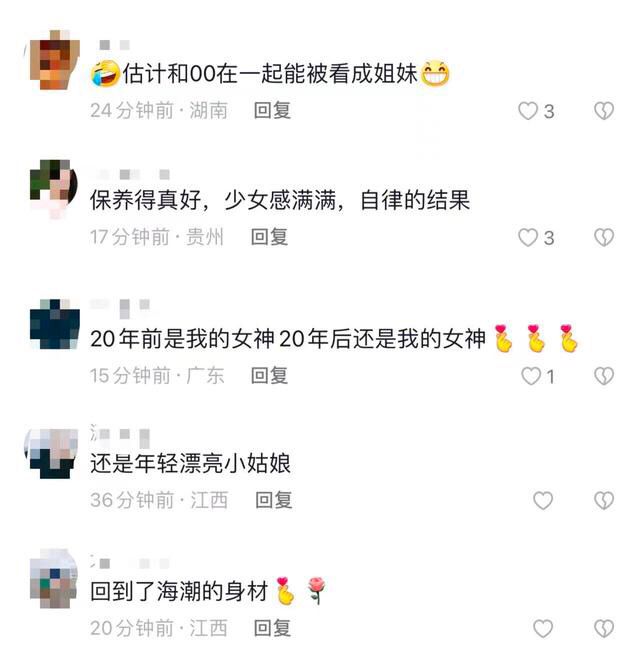 网友们也在评论中夸赞道,温碧霞和00后在一起会被看成是姐妹。还有人则感叹地表示,温碧霞20年前是他的女神,没想到如今还是他的女神。
