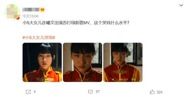 近日,有八卦媒体在社交平台上晒出小s大女儿参演苏打绿新歌《这天》MV女主的视频,小S看了都感动到哭!但是,许曦文在MV里的哭戏却引来了网友们争议,瞬间冲上了热榜。