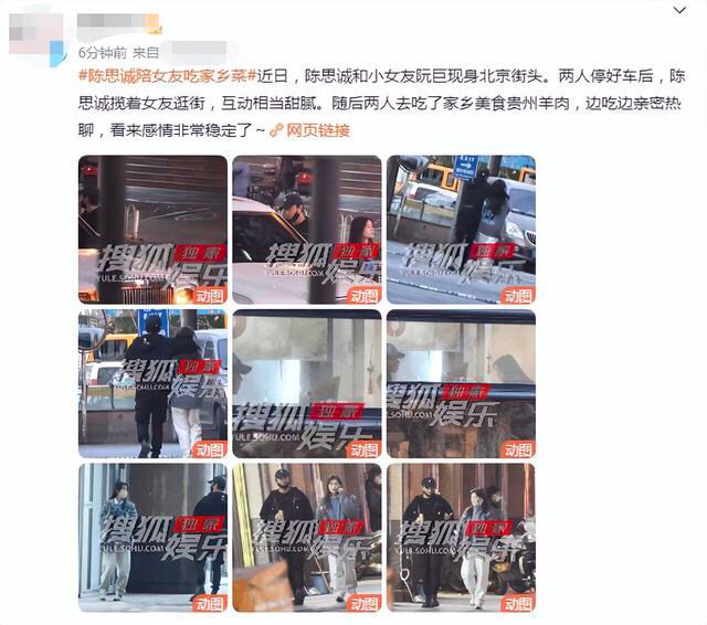 陈思诚平日里比较沉稳内敛,和女友在一起时,也开心地配合着她的节奏,走路的步伐都轻快了许多。