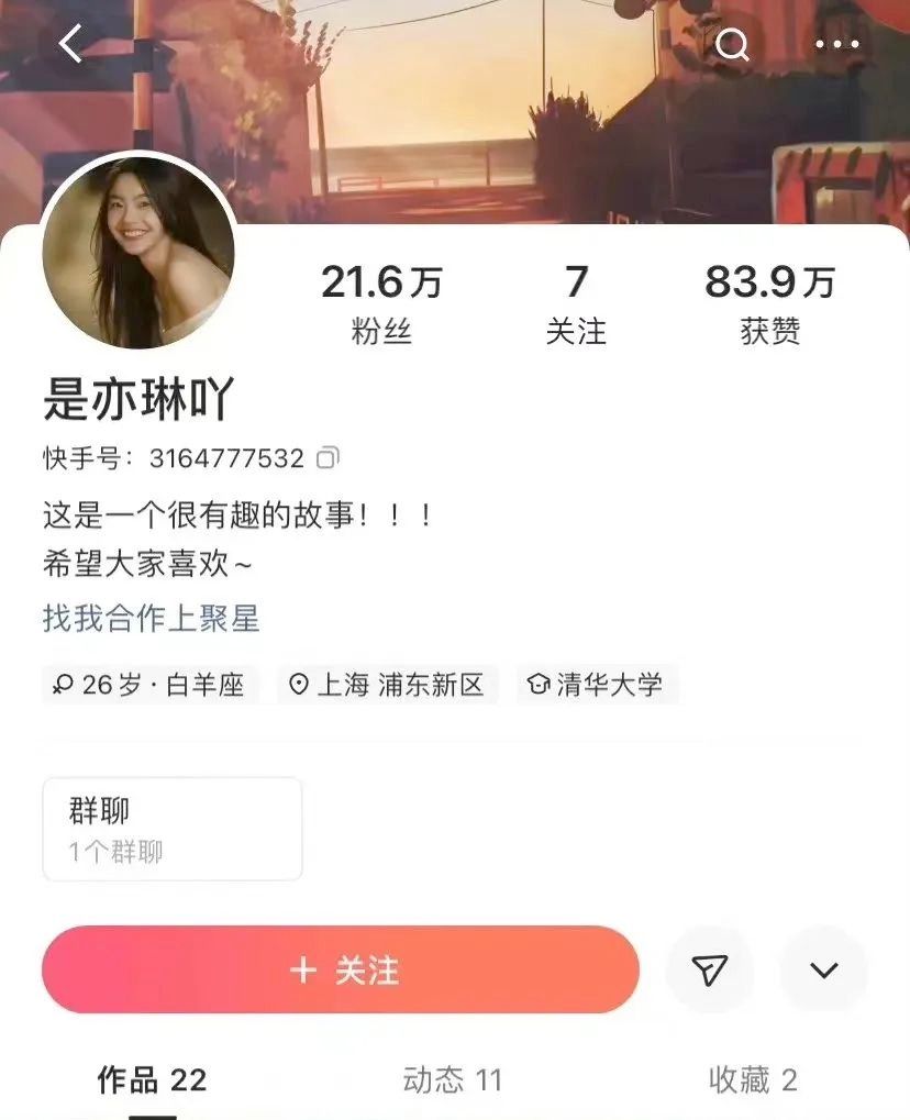 狗仔透露称该女生是小网红“是亦琳吖”,还是清华大学毕业的学生,今年刚满26岁,在某短视频平台上也有一万多的粉丝,关注度还是很广泛的。