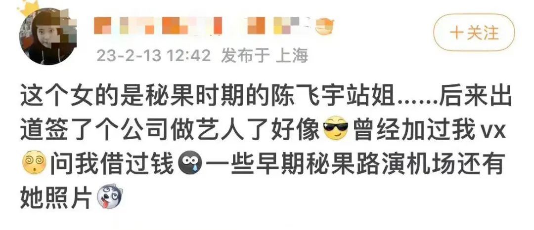 本以为是单纯的恋爱曝光,然而,令人意外的是,有网友扒出该女生是陈飞宇曾经的站姐,追随过陈飞宇出席的不少活动,在粉丝群里也出现过她的照片,两人关系十分亲密。