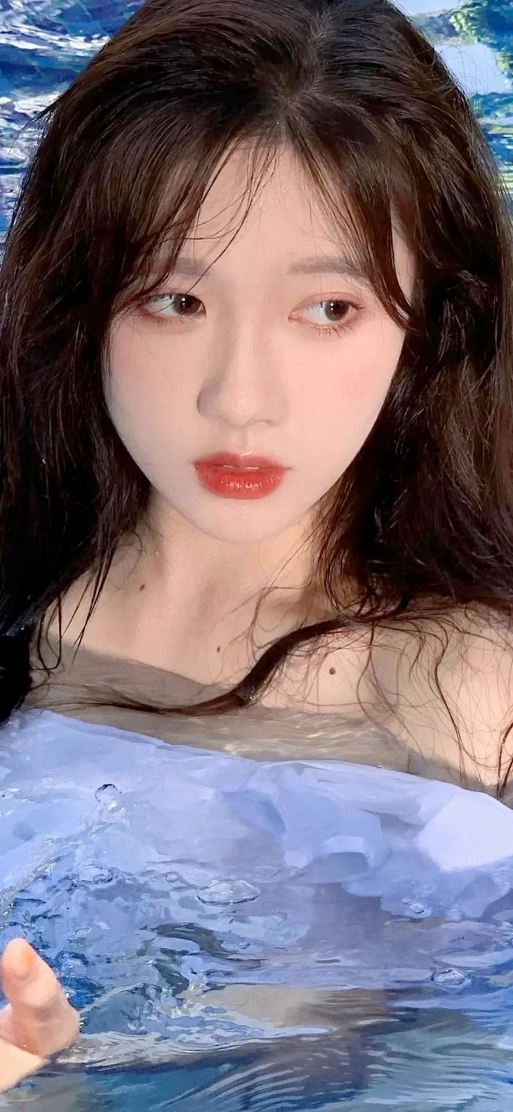 张柏芝泳池中秀身材,肤白肉嫩似美人鱼,拍摄者意外出镜引猜测!