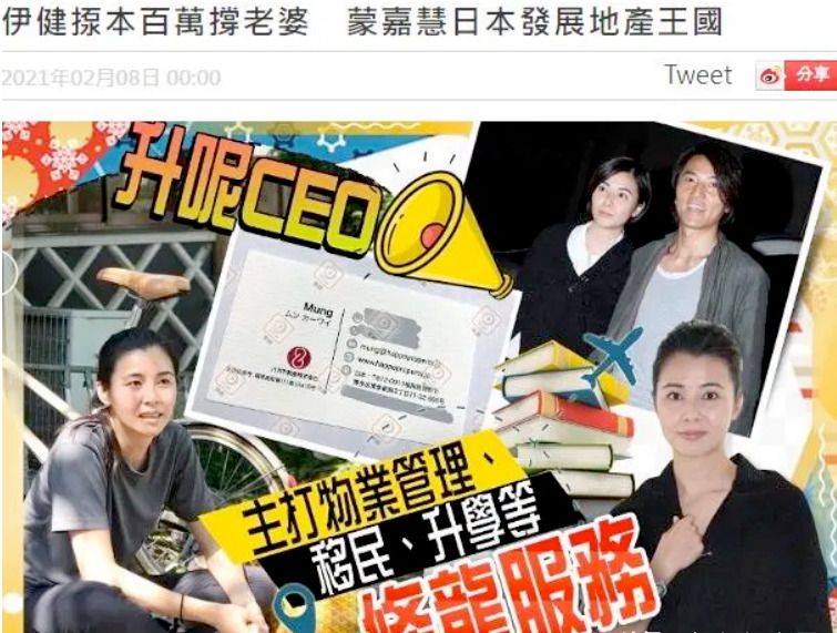 前段时间,郑伊健的妻子蒙嘉慧频繁晒照分享在日本的生活,还晒出了去日本某公司上班的照片,就连定位也是日本。