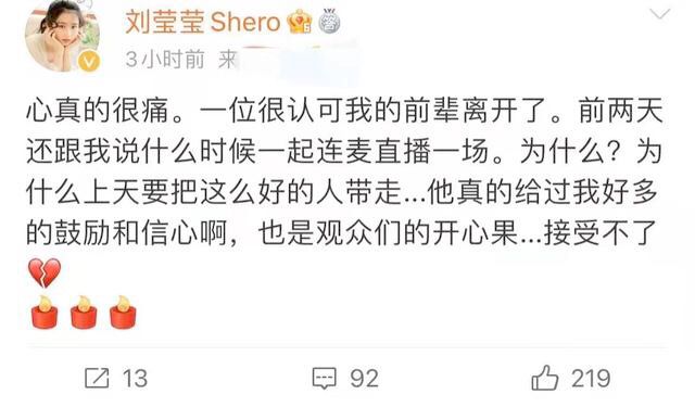 《外来媳妇本地郎》里的演员刘莹莹也发布动态表示悲痛,称前几天还打算邀请陈坚雄连麦直播,没想到意外来得如此突然,还说陈坚雄为人很好,给过她许多鼓励与信心。