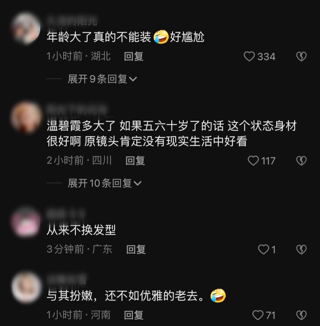 虽然温碧霞的四肢看起来很纤细,少女感十足,但皮肤早已不在状态了,所以让人看着真的无法跟网络一直营造的那种少女感联系起来。