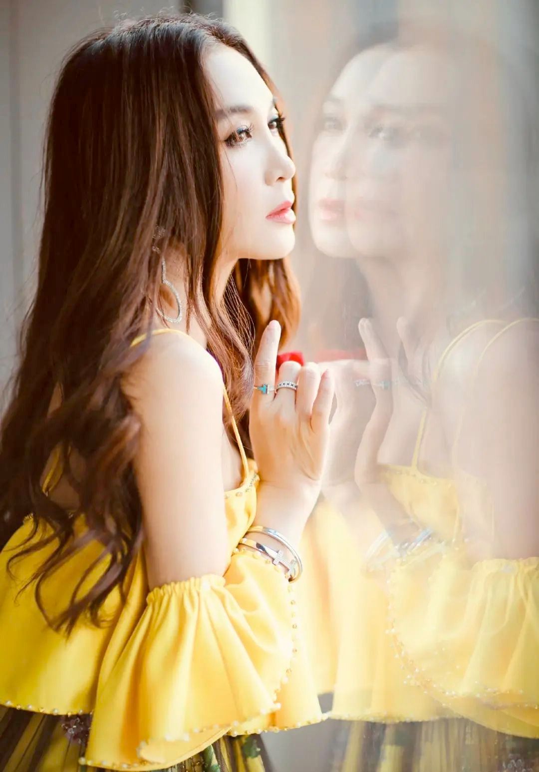 当时她肤若凝脂,满脸胶原蛋白,脸上看不到岁月的痕迹,连玻璃上的倒影都如此美丽动人。