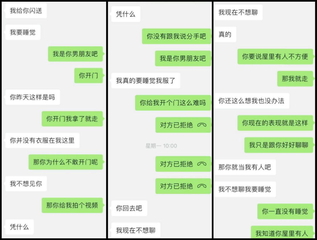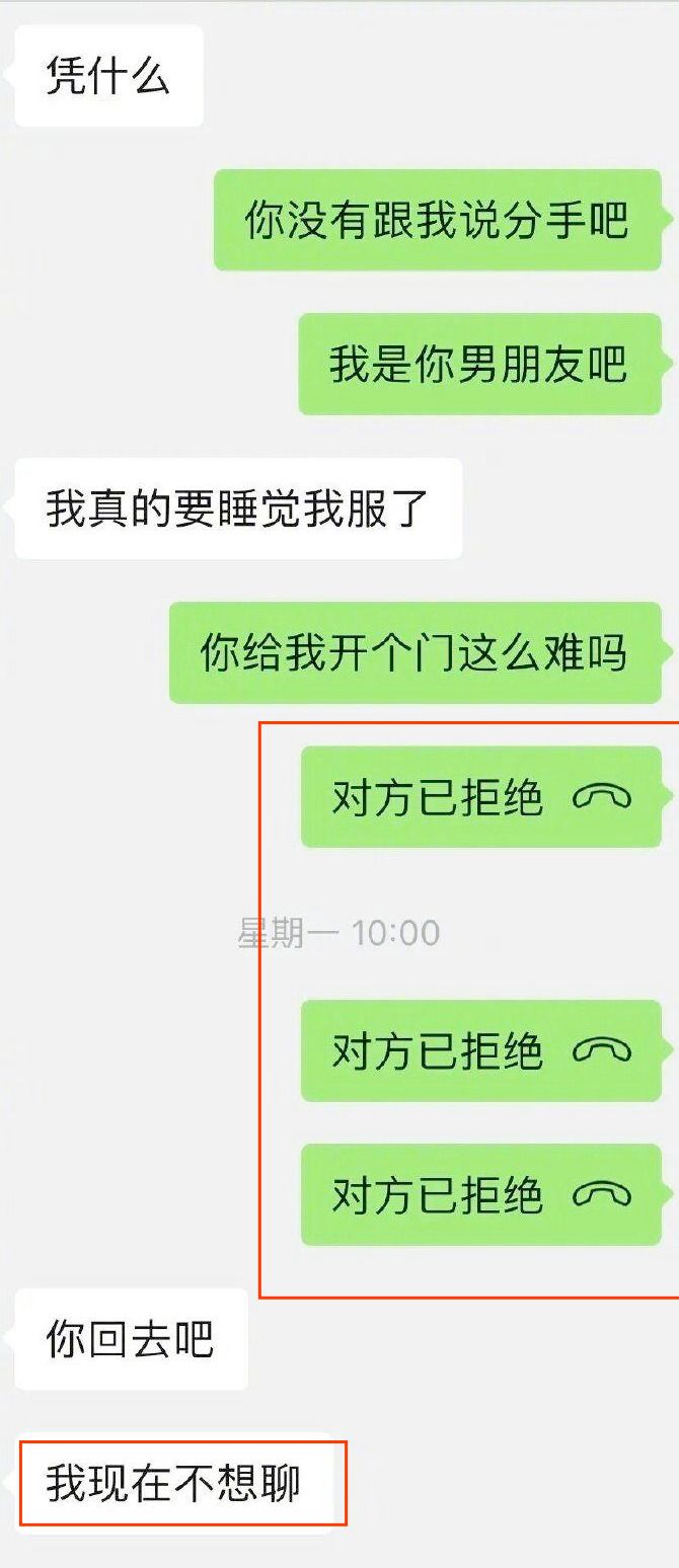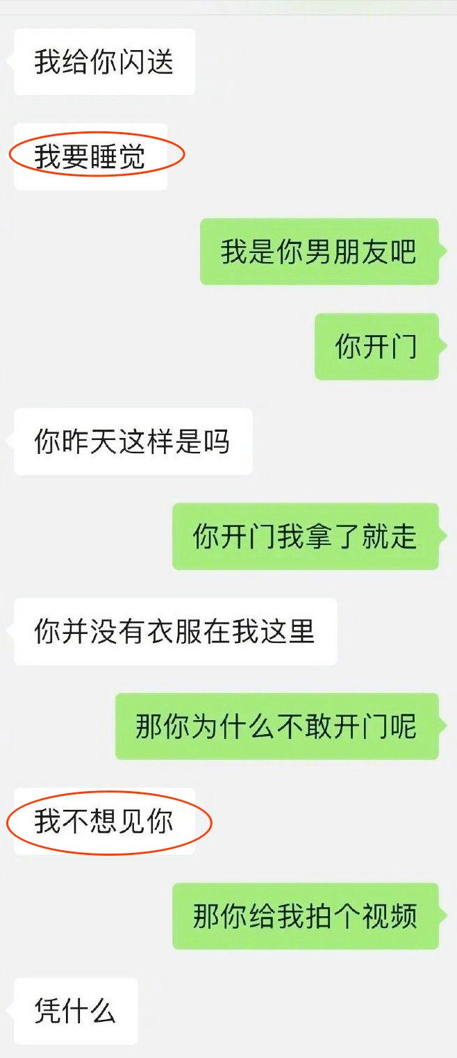 期间,网友数次发消息想让女友开门,但都被女友回绝,女友称自己要睡觉,不想见网友,于是网友随即提出要让女友接视频电话。
