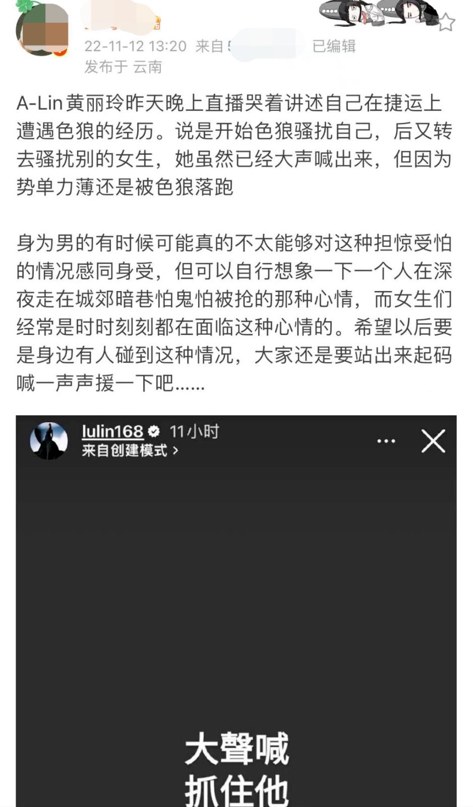 而近日,黄丽玲(A-Lin)在直播时哭诉自己在地铁站遭遇色狼骚扰,但她当时的所作所为被粉丝大赞勇敢。