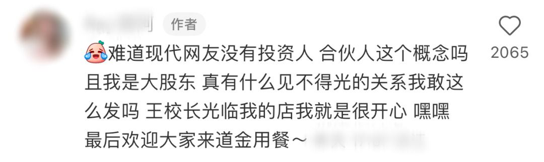 对于负面评价,美女在评论区大度地回应,坦言她是这个店最大的股东,王思聪来吃饭她就是很开心,还表示:“真有什么见不得光的关系,我敢这么发吗?”