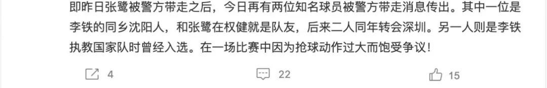 张鹭在2019年中超保级战武汉对天海时,曾参与打假球等,李铁供出的另外两人也和张鹭是熟人。目前相关部门正在调查张鹭,相信不久后就会有正式通报。