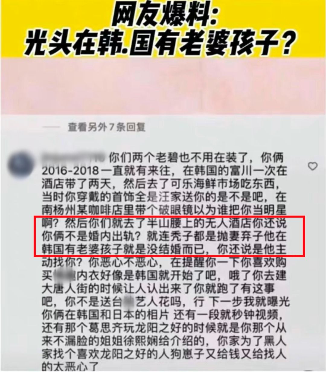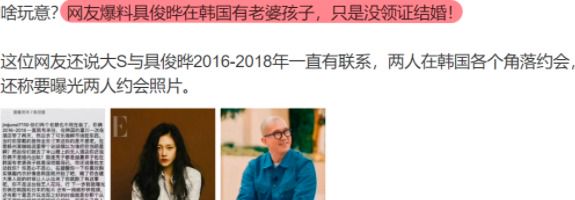 据知情人士爆料称具俊晔和大S曾在韩国的富川市约过会,还有一次他们在酒店待了两天,一起去海鲜市场吃了东西。更让人意外的是,当时大S身上穿戴的所有东西都是汪小菲家里送的,她却和具俊晔在酒店共度春宵。不仅如此,还说给大S撑腰的狗仔的葛思齐其实有龙阳之好,他的对象就是大S的姐姐给介绍的。