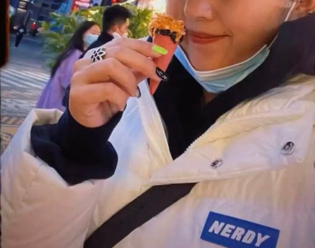 从画面来看,街上灯红酒绿,热闹不已。因为气温太低,何洁穿着长款羽绒服,戴着帽子,将自己包裹得严严实实。她流连于街边小吃,嘴巴都没有闲着,还在街头打卡拍照,脸上全程洋溢着幸福的笑容,四周没有一个行人认出她的明星身份。