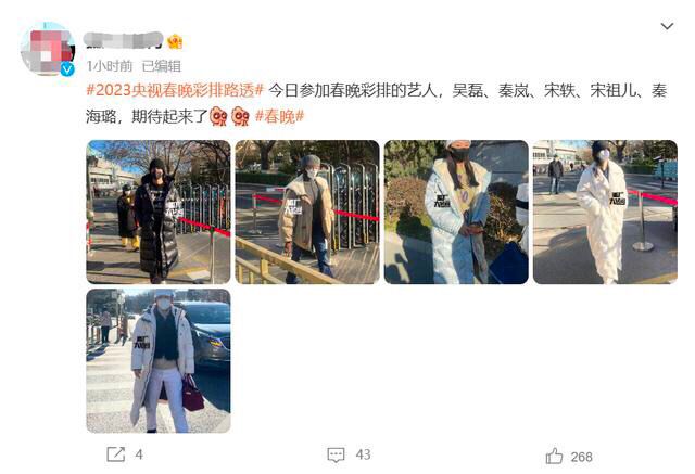这不,12月24日,就有媒体在社交平台上晒出了部分明星艺人参加2023年春晚彩排的照片,引来不少网友的围观。