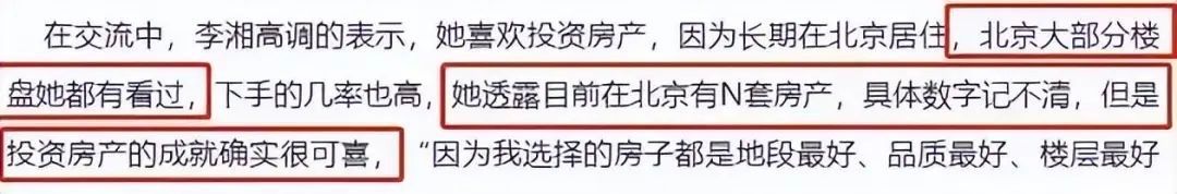 其实,李湘十分具有商业头脑,早年间她便开始投资,甚至何炅还曾在节目中透露李湘曾让投资房产。李湘也曾表示因为长期居住在北京,自己会去看各个楼盘,以至于她名下究竟有多少房产,李湘则是用“N”来概述。不得不说,在北京这种寸土寸金的地方,她能够拥有如此多的房子,的确是有挥霍的资本。