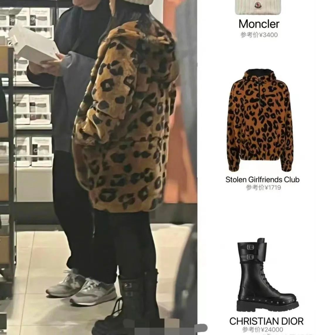 在晒出的照片中,王诗龄身穿豹纹外套,戴着白色针织帽子,脚踩马丁靴,双手插兜站在爸爸的身边。虽然她打扮得很是普通,但一双鞋子就售价24000元,帽子售价3400元,一身穿搭抵得上普通人几个月的工资,不愧网友们称呼她为“名媛”。