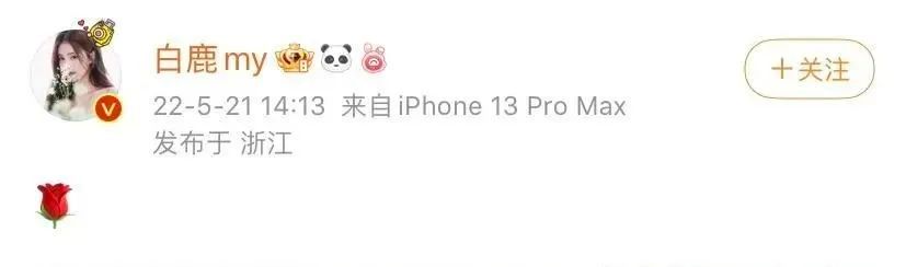而且白鹿也在5月21日这一天拍摄了一组拿红玫瑰的照片,照片美艳动人,很有味道。