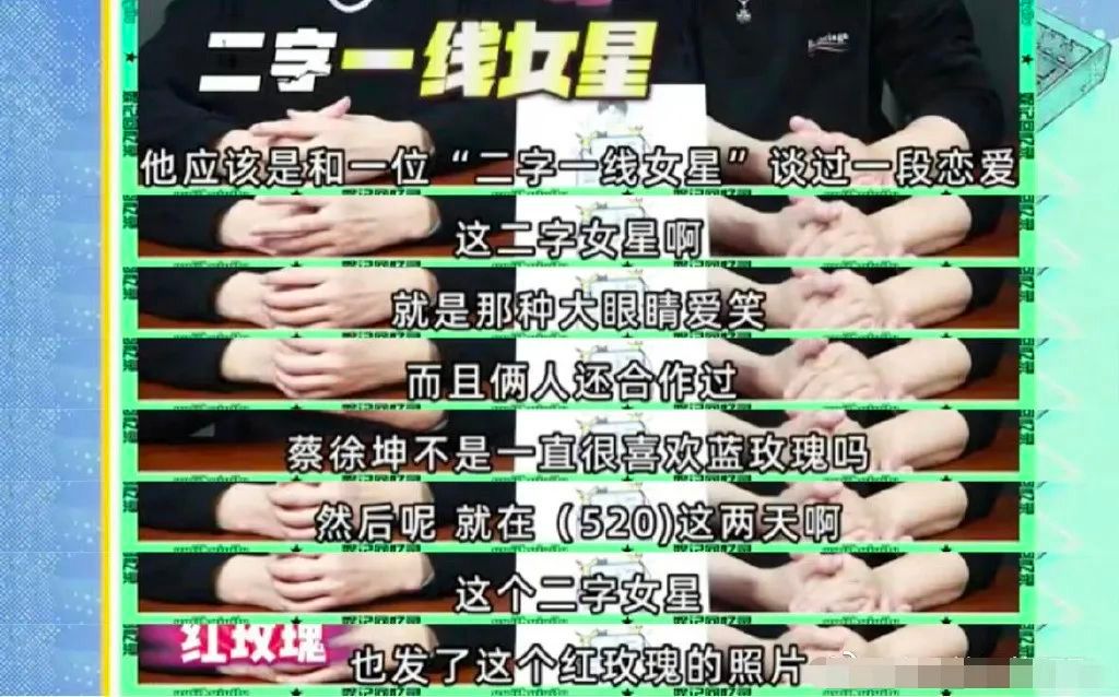 狗仔说道:“蔡徐坤不是一直很喜欢蓝玫瑰吗,然后呢,就在520这两天啊,这个二字女星,也发了这个红玫瑰的照片”,两人发动态显得非常暧昧,疑似关系模糊不清。
