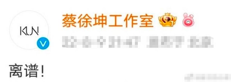 就当大家议论纷纷之际,蔡徐坤的粉丝们都在转发“蔡徐坤工作室”的一条动态,只有两个字那就是“离谱”。