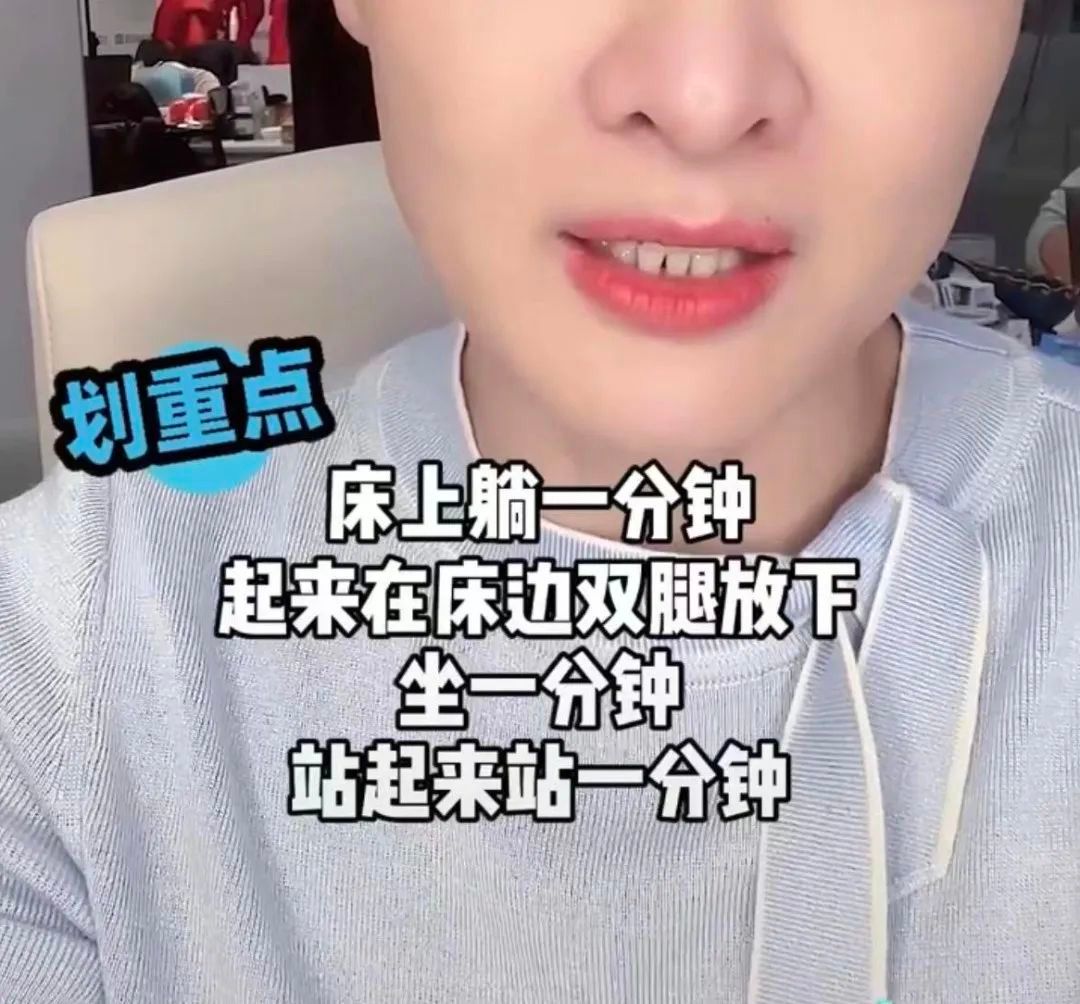 李小萌也给大家分享了早上起来“3个一分钟”,床上躺一分钟,起来坐在床边双腿放下坐一分钟,站起来站一分钟 。这个针对的不止是老年人,像4、50所有的中年人都很适用。