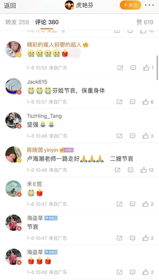 评论区不少粉丝纷纷痛惜,希望卢海潮老师一路走好!