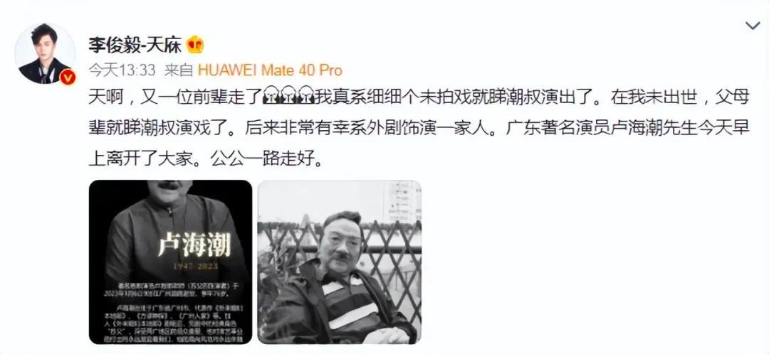 由于卢海潮去世的消息来得太突然,各位粉丝观众都无法接受。
