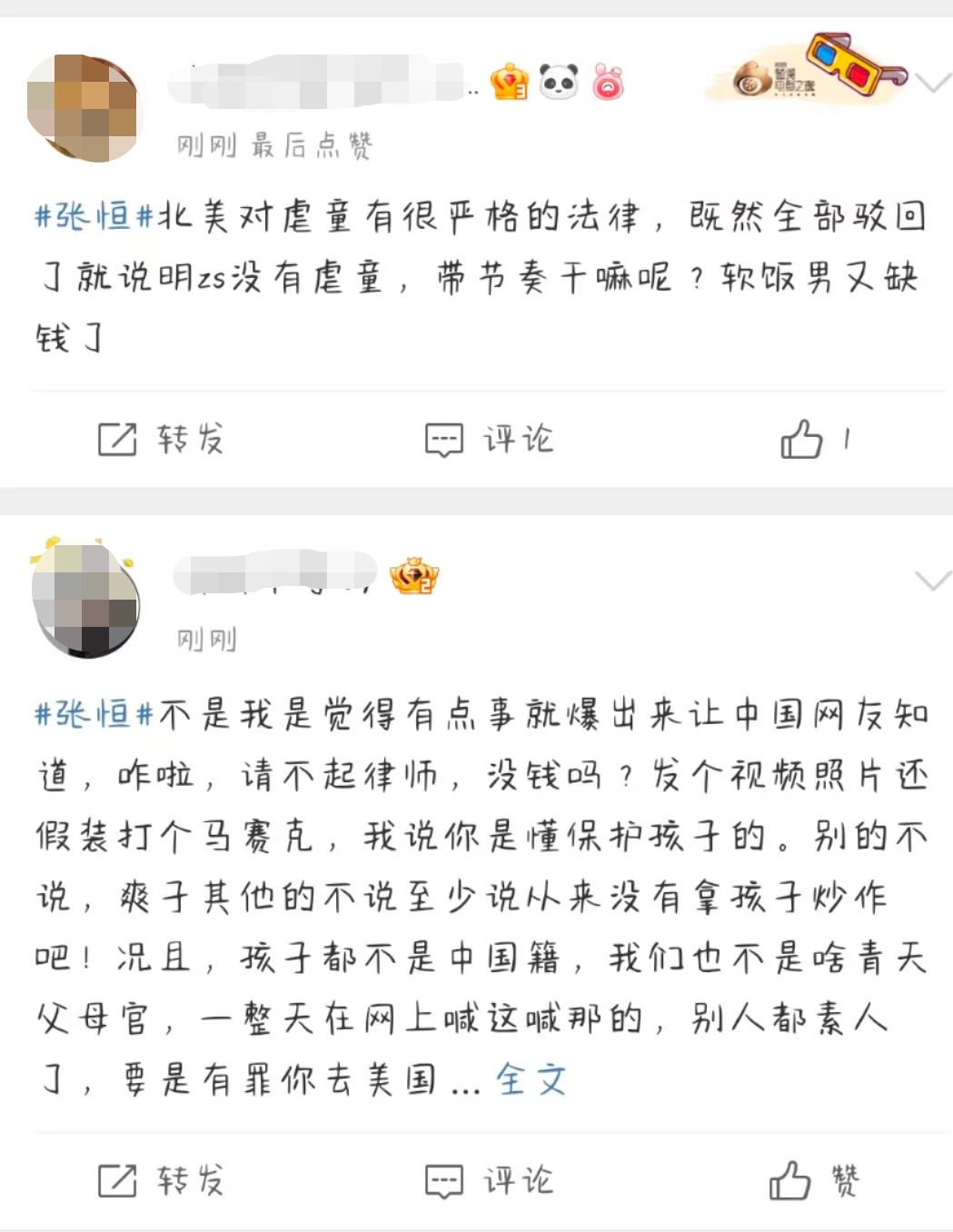 不过也有网友指出是张恒在引导舆论,“这些证据张恒已经提交给美国警察和机构了,北美对虐童有很严格的法律,既然全部驳回了就说明没有虐童”,看来大家对这件事都有着自己的看法。