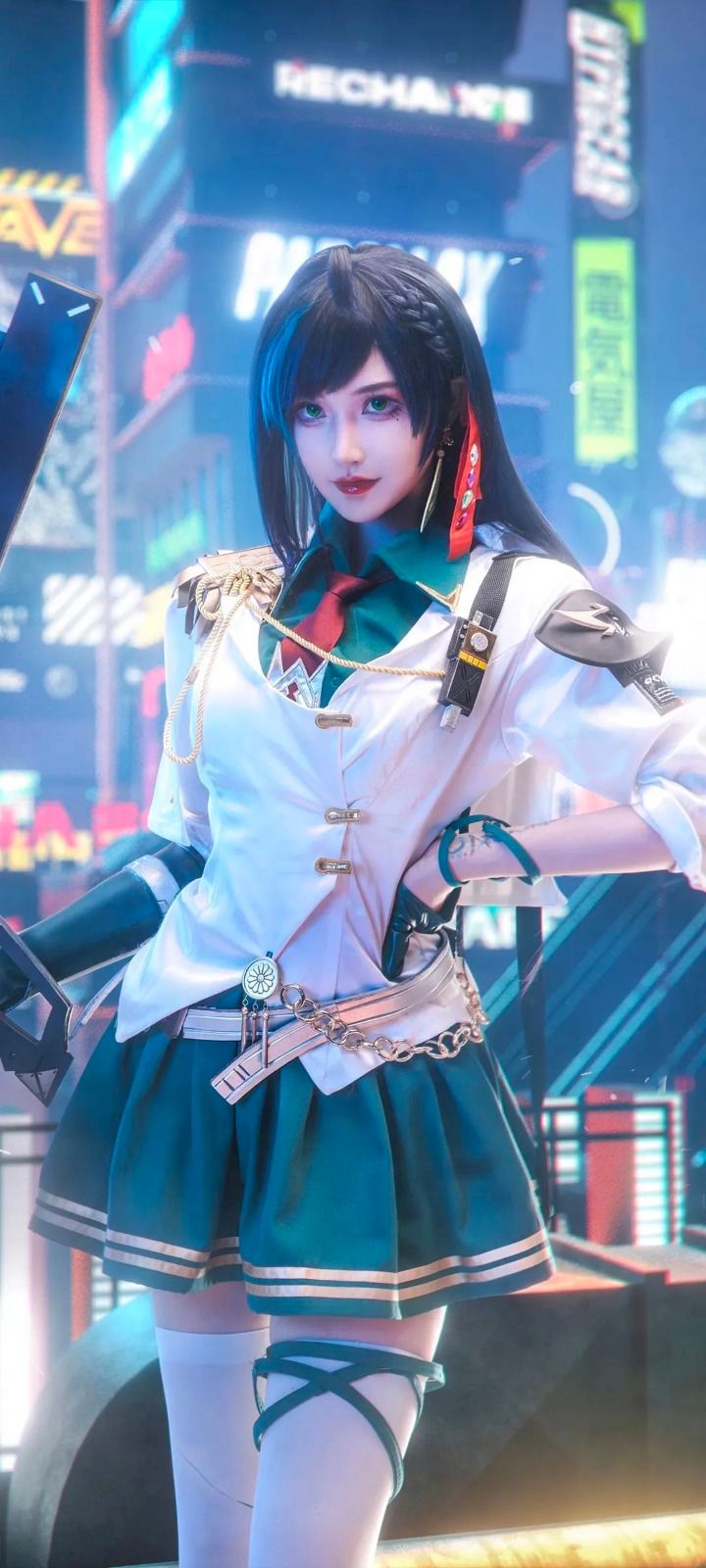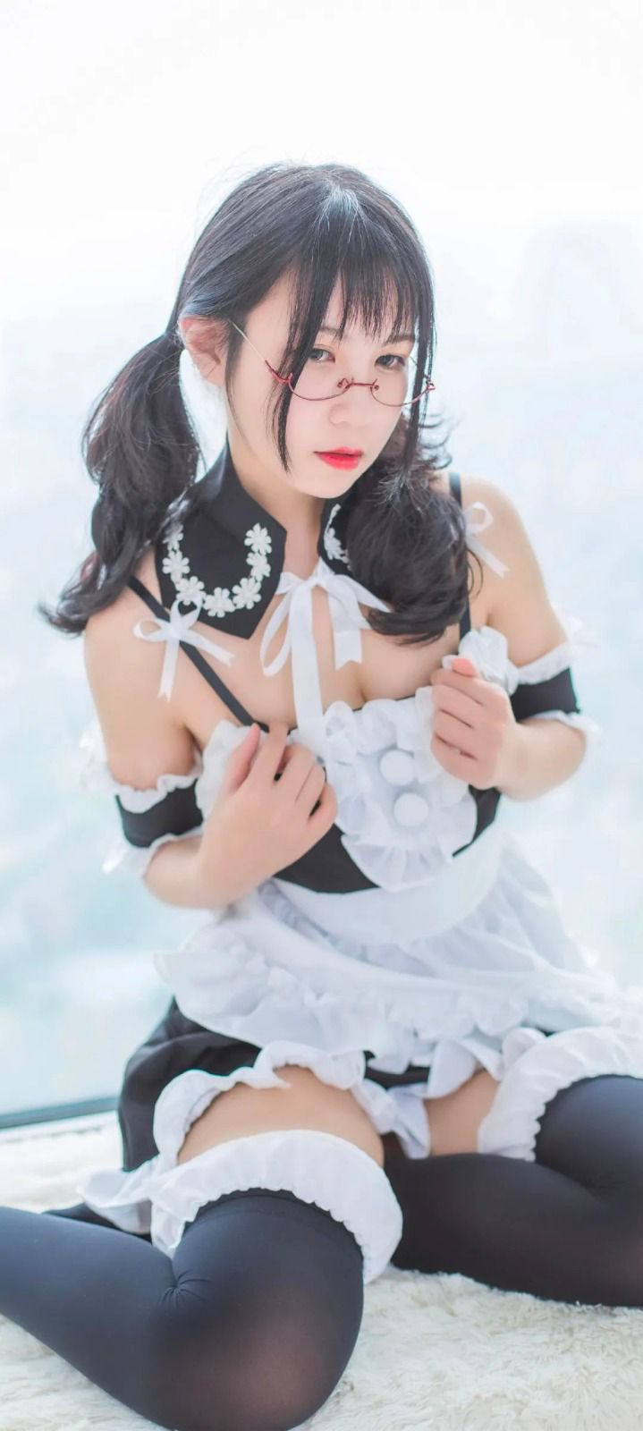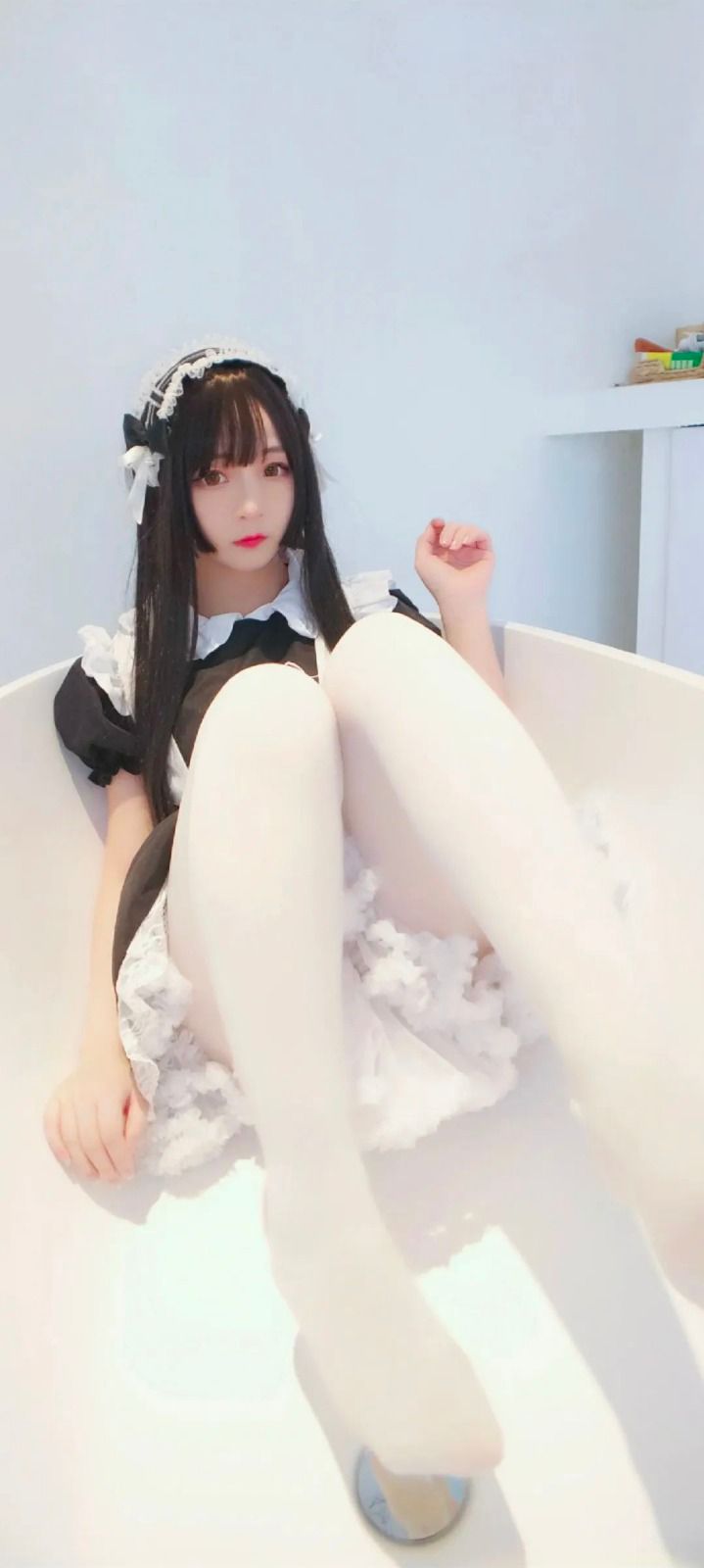 黑丝COS萌妹 超短裙美腿 全面屏高清壁纸