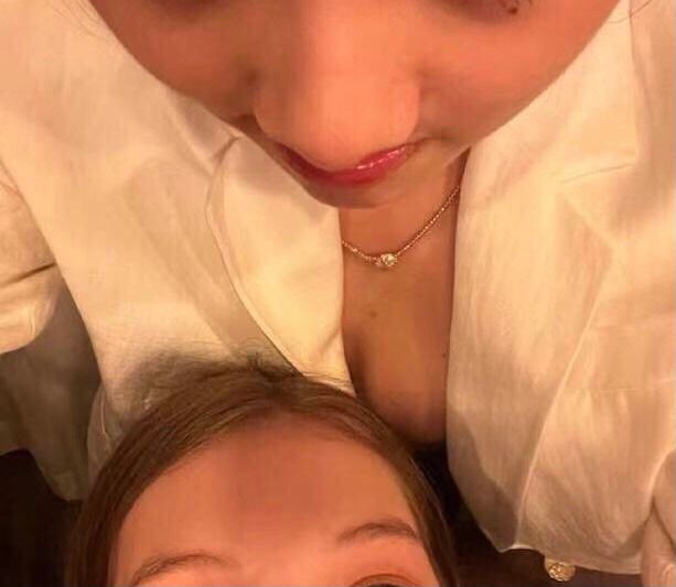 紧接着,多多又与另一位同学对着镜头比心,两人的头紧紧地靠在一起,看起来关系十分亲密。能够看到她手上涂着红色指甲油,显得格外抢眼,眼神中也没了之前的懵懂,反倒多了些“小女人”成熟的魅力。随后,多多又晒出一张俯拍的照片,将自己的好身材完美地展现在镜头下。只见一位同学躺在她的怀中,多多对着镜头露出笑容。但因为角度和服装问题,她有些走光,能够看见事业线十分明显。