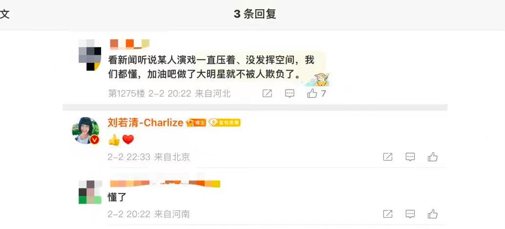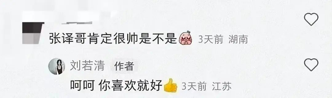 因此,有网友猜测,刘若清是不是被张译欺负了。有粉丝为她打抱不平时,她还回复了一个大拇指的表情包,似乎证实了这个猜想,一时间在网上引发热议。