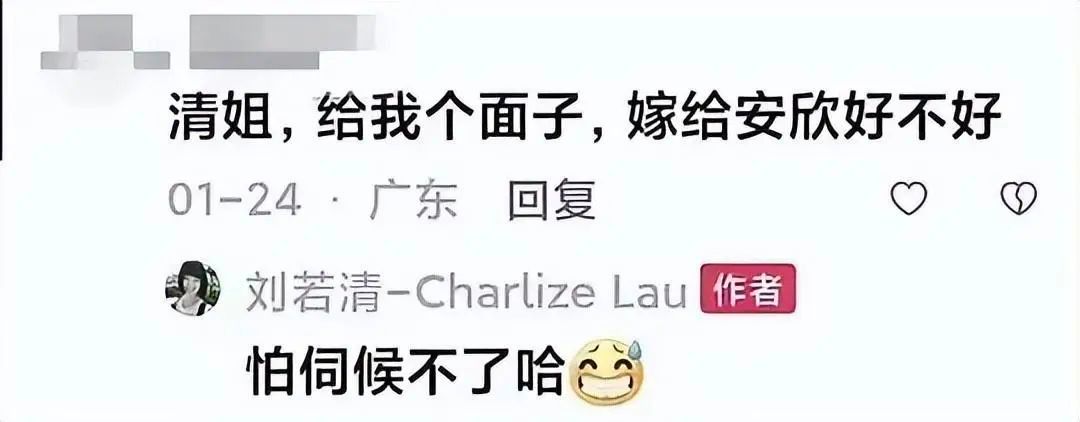 更早以前,网友开玩笑地表示,希望刘若清饰演的“姜超”可以嫁给张译饰演的“安欣”,刘若清也断然拒绝,直言“怕伺候不了哈”。