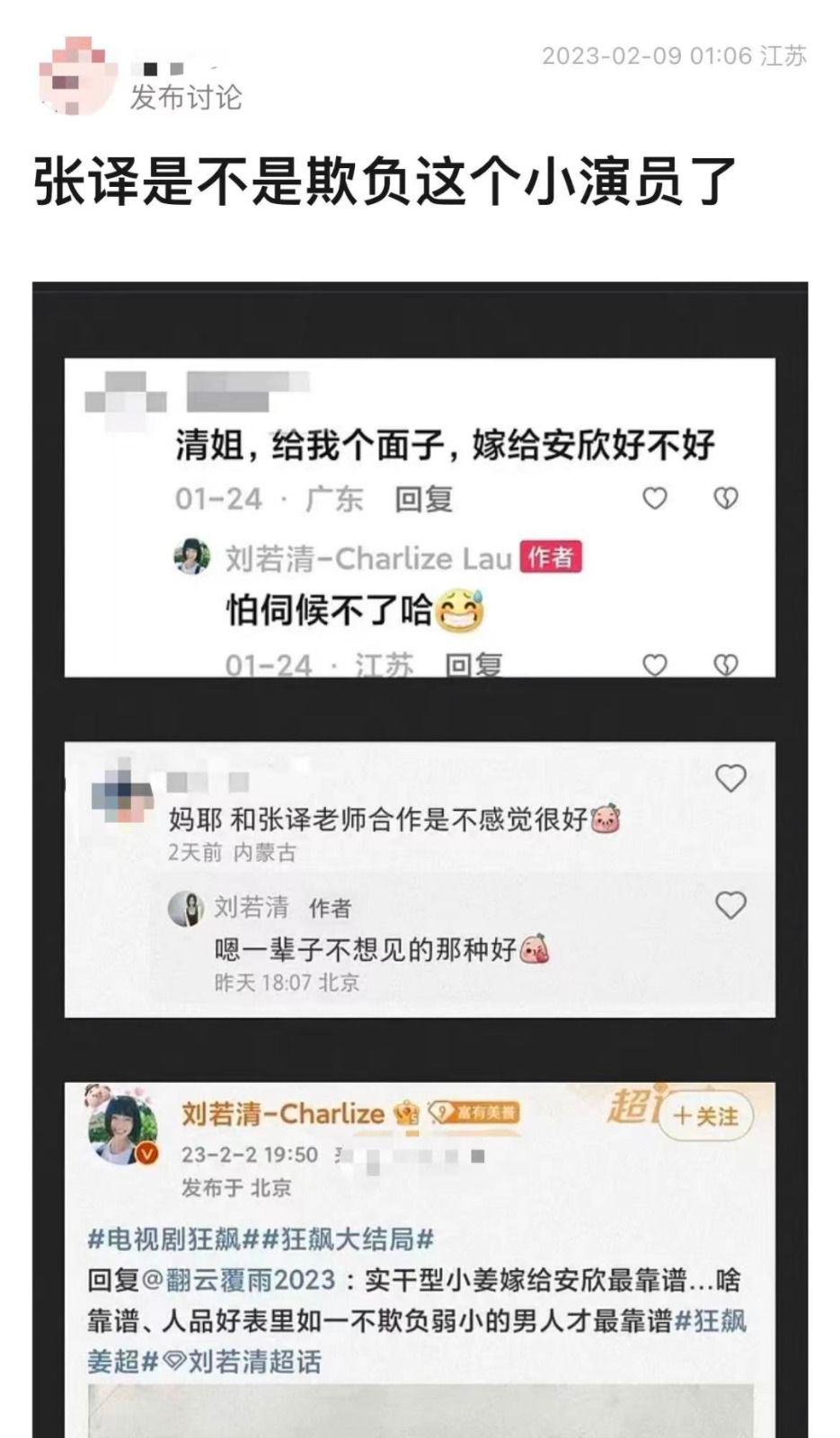 更让人惊讶的是,刘若清还特意发文,否认“安欣”很靠谱,疑似内涵张译表里不如一,只会欺负弱小。