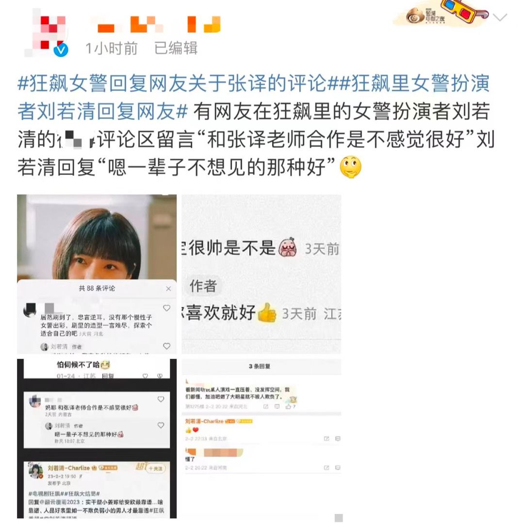 但不得不说,人红是非多,剧红是非也多,在最近一段时间内吗,有关张译和剧组还有其中的演员是非也是不断,在2月9日,就有网友在社交平台上晒出,在这部剧中饰演张译徒弟的女警姜超的扮演者刘若清在评论区疑似内涵张译的话语,从而登上热搜,引发热议。