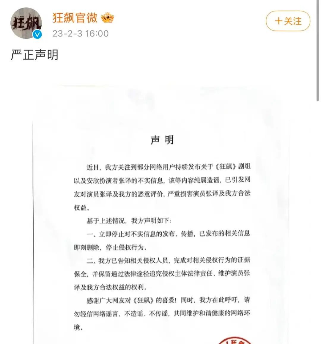 说起来,张译大火后的确引来了许多争议,包括在社交账号上删除《狂飙》唯一一张宣传照,被疑与剧组闹翻。直到《狂飙》官方账号发文澄清,才平息这场风波。