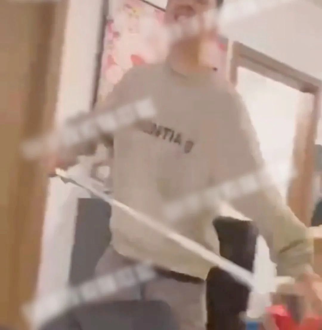 不过,值得注意的是,视频中何龙龙也提了一句“你XX在外面有人还光荣了是不是”,似在说他女友给他戴了绿帽子。女友则解释道没有的事,还称可以带孩子去做DNA来证明,但是何龙龙表现的很狂躁,不听女友的解释拎起扫把殴打女友。