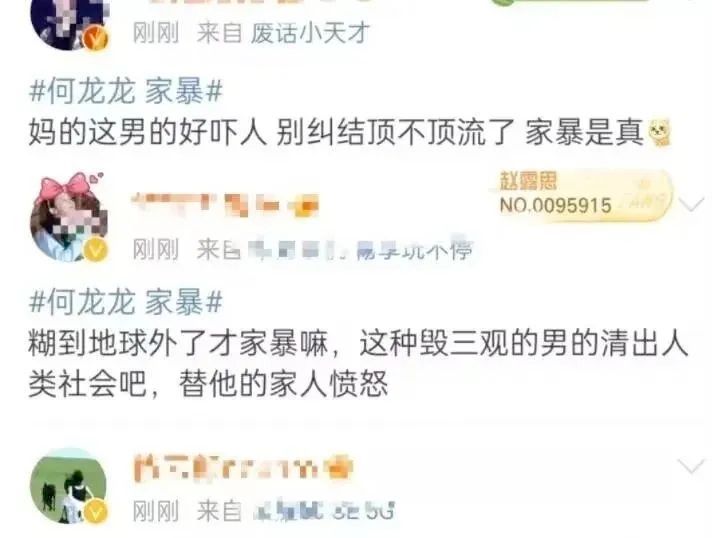 到了2月21日晚上,该娱记准时开播揭晓这位家暴男星,原来这位男星是演员何龙龙。消息一出,瞬间登上热搜榜首,无数网友喊话让他退圈。