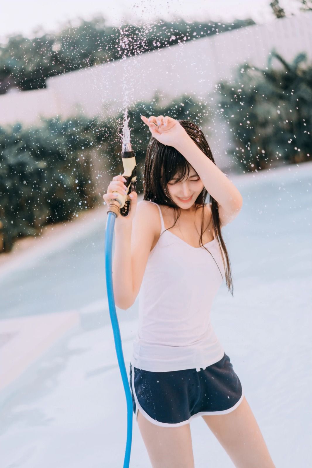 张柏芝泳池中秀身材,肤白肉嫩似美人鱼,拍摄者意外出镜引猜测!