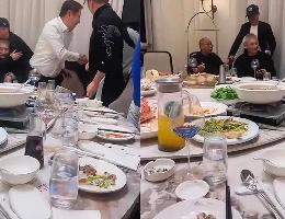 吴京与圈内大佬聚餐,海鲜摆满一桌,张涵予包房霸气抽雪茄!